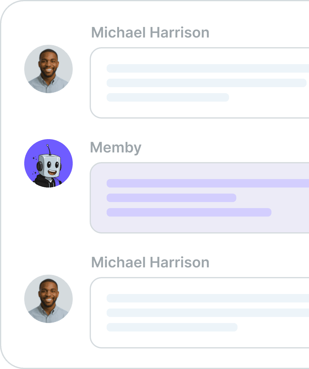 Prospects have endless questions and need constant reassurance, but you can’t be everywhere at once. Memby steps in as your always-on teammate. Friendly, accurate, and tirelessly engaging leads until they show up and sign up.